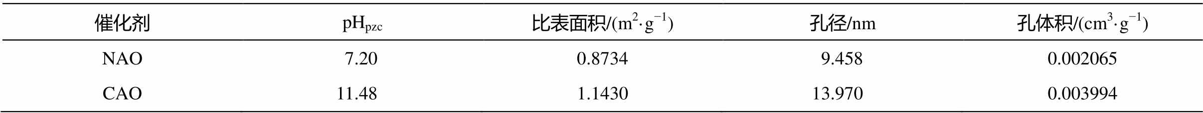 表2 兩種催化劑NAO和CAO的性質(zhì)